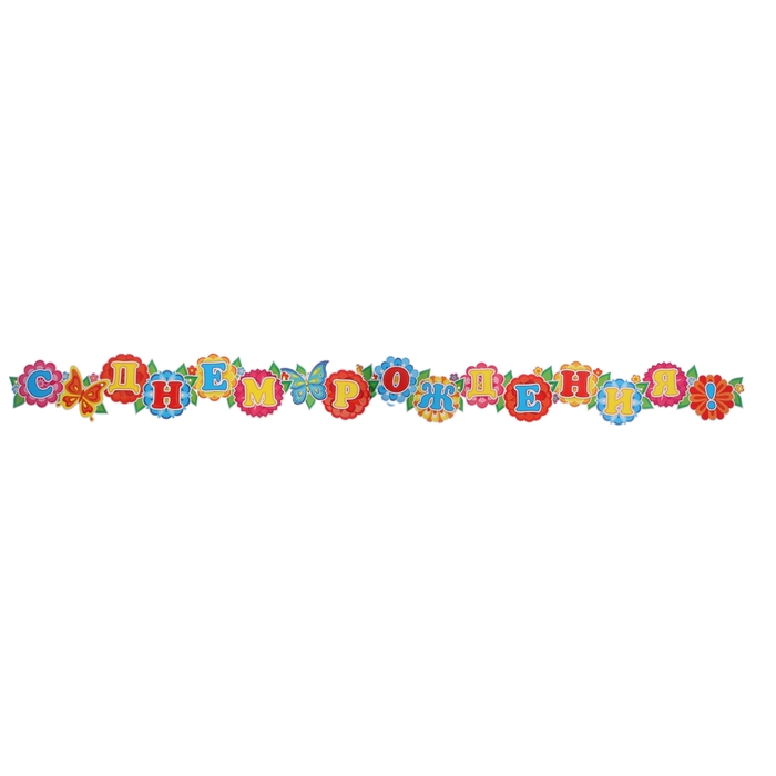 Гирлянда + плакат "С Днем рождения!", бабочки, цветы, гирлянда 220 см, плакат 339x494мм