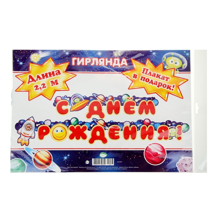 Гирлянда "Поздравляем с днем рождения!" космос 220 см
