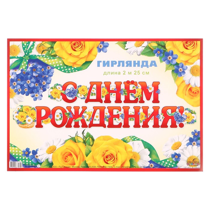 Гирлянда "С Днём Рождения!" цветы, 225 см