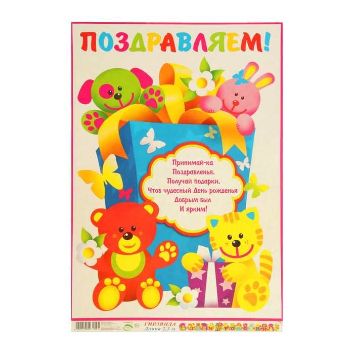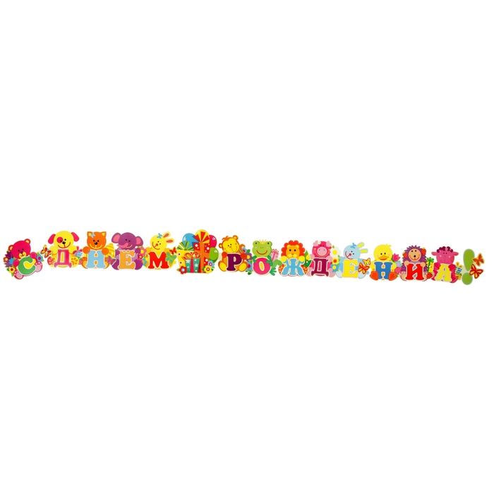 Гирлянда "С днем рождения!" ромашки, разноцветные буквы