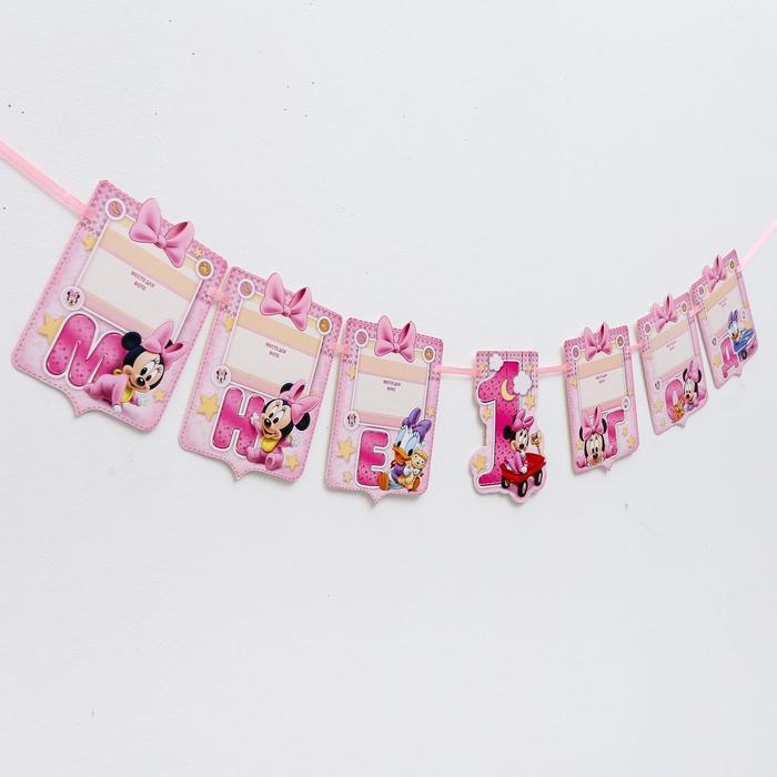 Гирлянда с местом для 6 фото "Мне 1 годик", Минни Маус, Дисней Беби