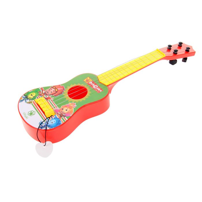 Музыкальные игрушки развивают слух, мелкую моторику и фантазию ребёнка. Гитара с нейлоновыми струнами сделана из пластмассы. В комплекте есть медиатор.