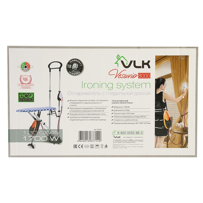 Гладильная система VLK Vesuvio 8000, 1700 Вт, 0.85 л, пар 120 г/мин, оранжевая