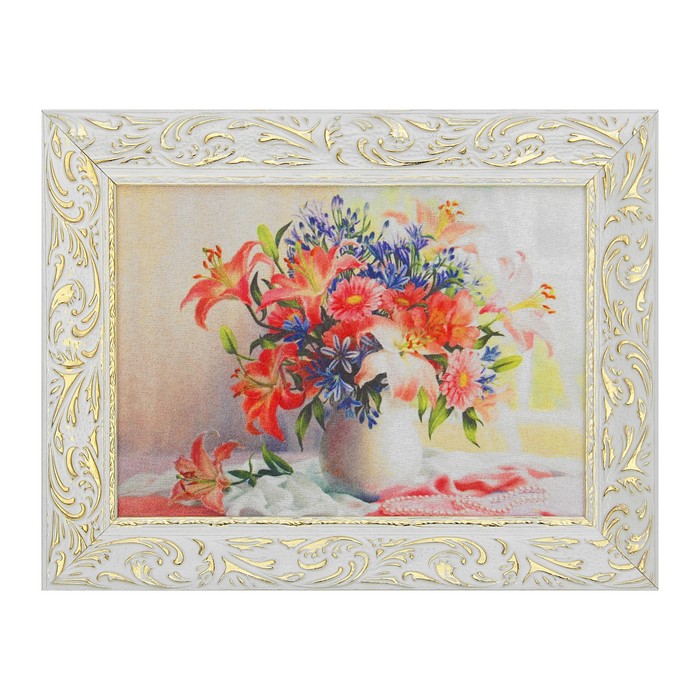 Что может наполнить дом изысканностью и уютом одновременно? С этой задачей изящно справится гобеленовая картина "Букет на окне" рама микс. Она поражает детализированностью рисунка. При близком рассмотрении как будто нарисованное полотно открывает ювелирное переплетение волокон и рельеф благородной ткани.