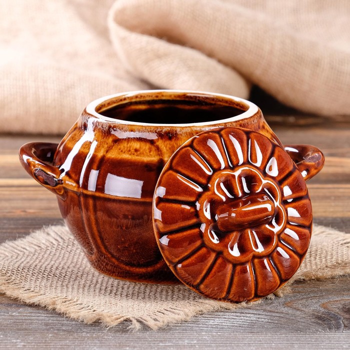 Такой горшочек — ценное приобретение для кухни, которое даёт невероятные возможности для кулинарных импровизаций. Процесс приготовления пищи в такой посуде очень прост. Изделие изготовлено вручную из керамики и прекрасно дополнит традиционный интерьер русской кухни. Удобные ручки позволят без труда достать блюдо из духовки.