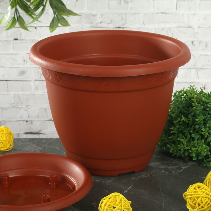 Горшок для цветов d=17 см "Борнео" 1,5 л, с подставкой, цвет терракотовый