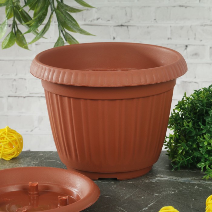 Горшок для цветов с поддоном d=13 см "Таити", цвет терракотовый