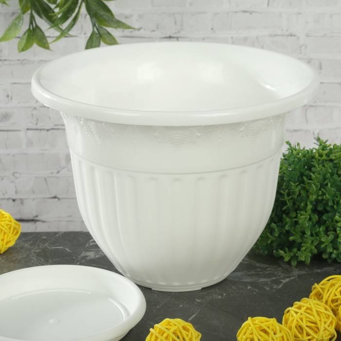 Горшок-кашпо 1,5 л "Лозанна", поддон, цвет белый