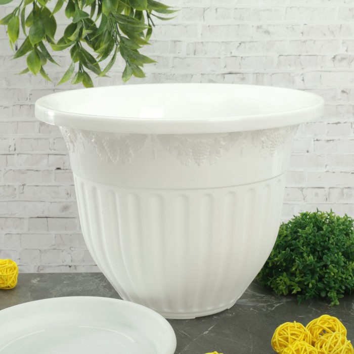 Горшок-кашпо 4 л "Лозанна", поддон, цвет белый
