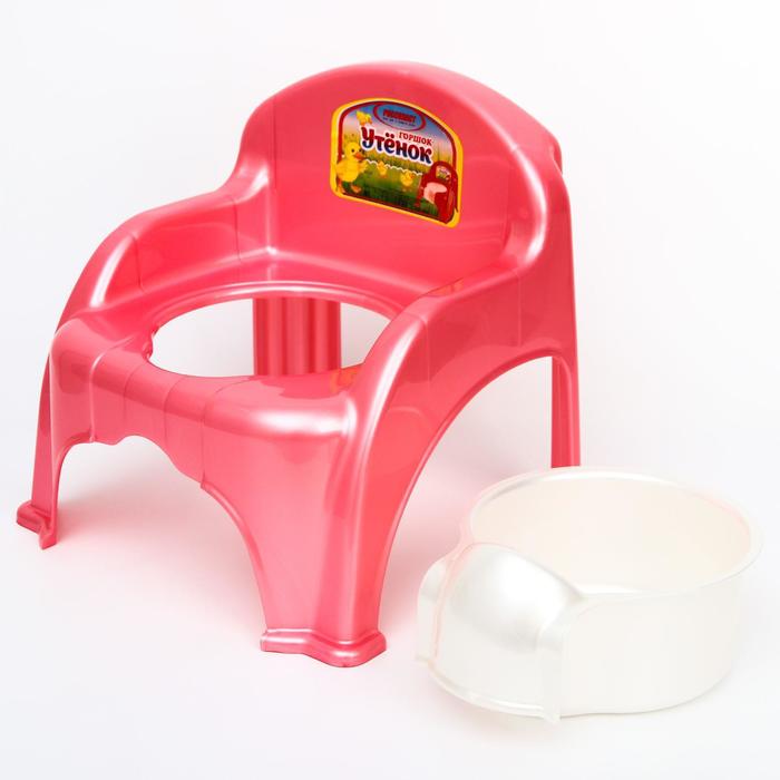 Такой горшок напоминает стульчик, поэтому ребёнку будет привычно садиться на него. Для удобства модель оснащена спинкой и подлокотниками. Высота изделия оптимальна для малютки. Для удобства предмет оснащён подлокотниками.
