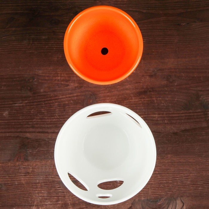 Горшок "Виктория" 2 горшка: 2 л и 1 л глянец Белый и оранжевый позаботится о зелёном питомце, освежит интерьер и подчеркнёт его стиль.