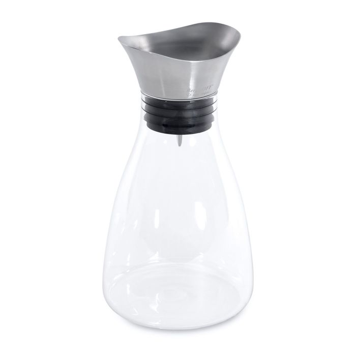 Графин изготовлен из термостойкого стекла. Изделие подойдёт для домашних лимонадов, холодного чая, морсов и обычной питьевой воды. Горлышко пропускает только жидкость и удерживает ягоды, фрукты, листья и т. п.