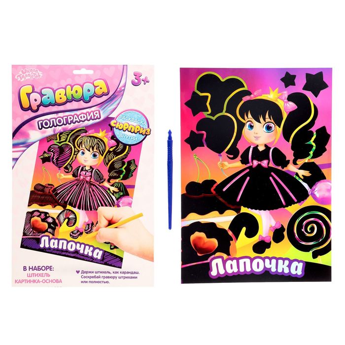 Чтобы создать красивую гравюру, достаточно процарапать намеченные контуры рисунка специальным инструментом — штихелем. Дети будут с удовольствием соскребать верхний слой картины по контурам рисунка, под которым находится цветное изображение! Готовая гравюра станет ещё и приятным поздравлением для родных и близких малыша.
