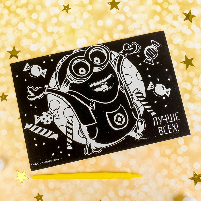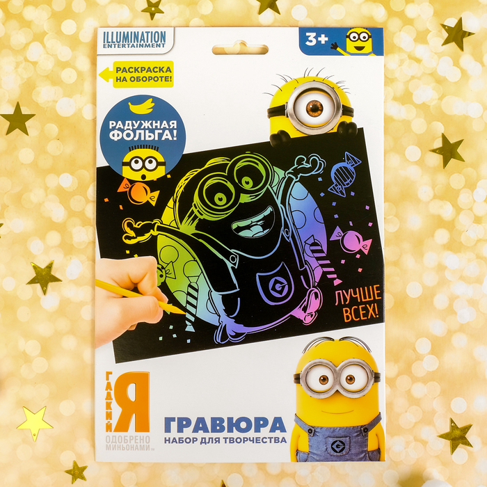 Гравюра "Лучше всех!" Гадкий Я с металлическим эффектом - радуга А5+ штихель