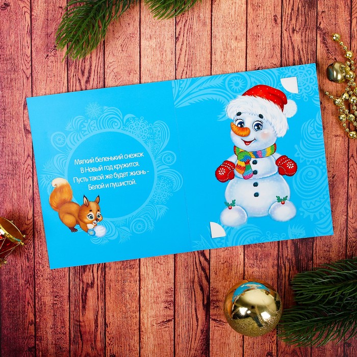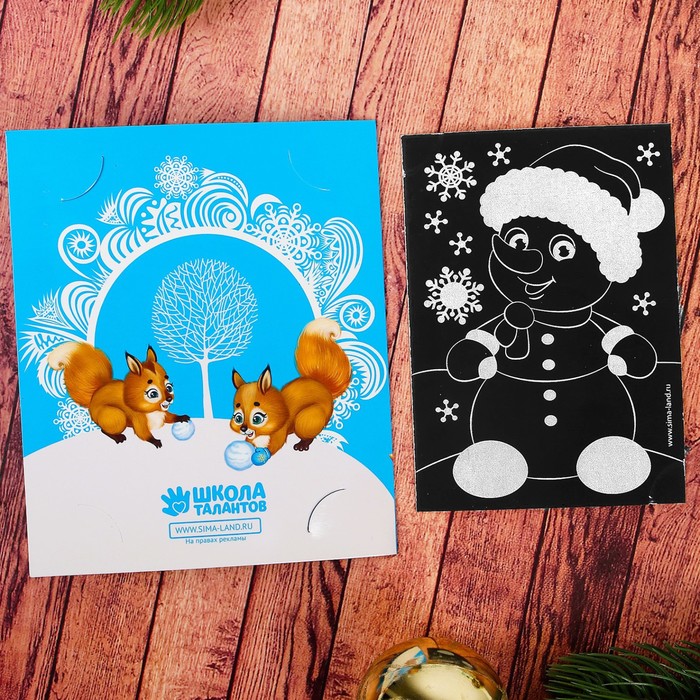 Гравюра на открытке "Веселый снеговик" с металлическим эффектом - радуга + штихель