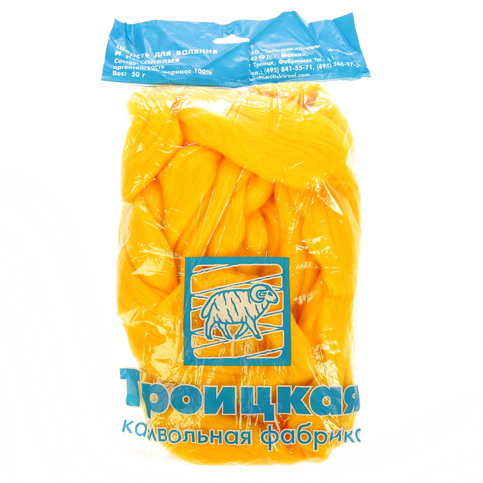 Гребенная лента 100% шерсть аргентинский меринос 50гр (0591, желтый)