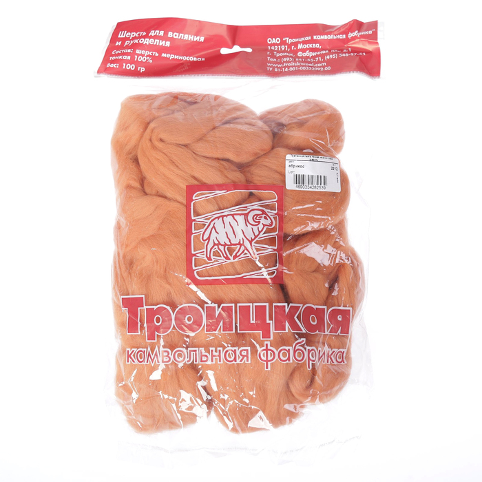 Гребенная лента 100% тонкая мериносовая шерсть 100гр (2212, абрикос)
