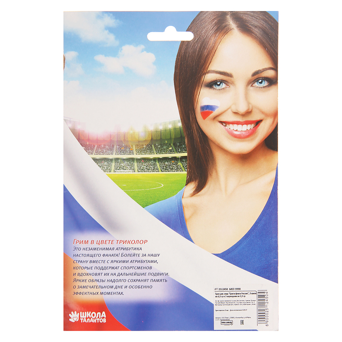 Грим для лица "Цвета флага России", 3 цвета по 0,5 гр и 3 карандаша по 0,5 гр