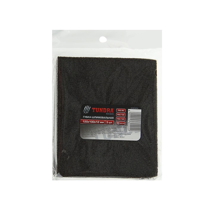 Губка шлифовальная TUNDRA basic, 120х100х12 мм, Р60/100, Р60/80, Р80/120, мягкая