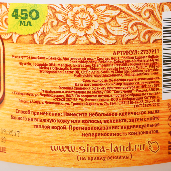 Густое мыло в баню "Лучшему банщику", 450 мл эффективно очищает кожу, не травмирует и не сушит её.