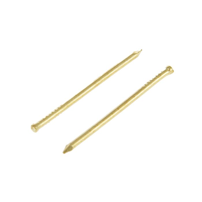 С помощью латунированного финишного гвоздя вы проведёте декоративно-отделочные работы так, что применение крепежа будет малозаметным. Это станет возможным благодаря малому диаметру цилиндрической головки и тому, что она утопится заподлицо с поверхностью детали.