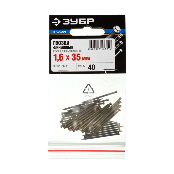 Гвозди финишные "ЗУБР Профессионал", 1.6х35 мм, с покрытием венге, в упаковке 40 шт.