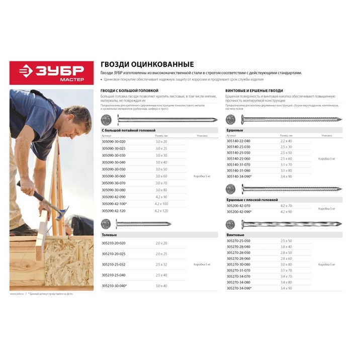 Гвозди винтовые "ЗУБР Мастер", 3.1х70 мм, оцинкованные, в упаковке 5 кг