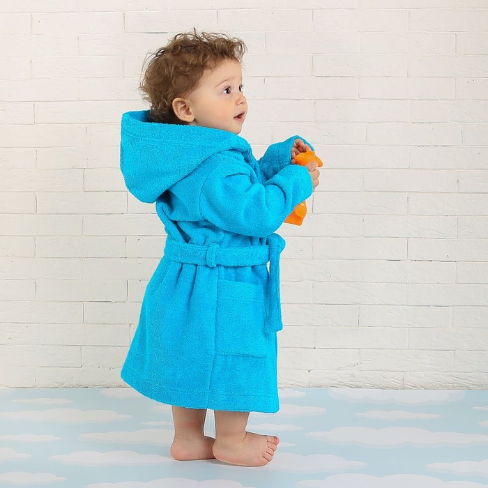 Халат махровый детский, размер 32, цвет морской, 340 г/м2 хл.100% с AIRO