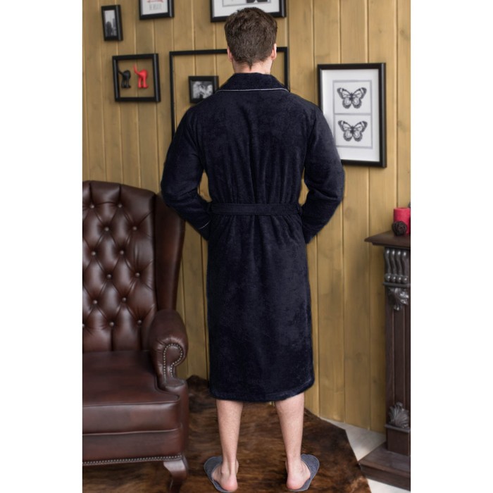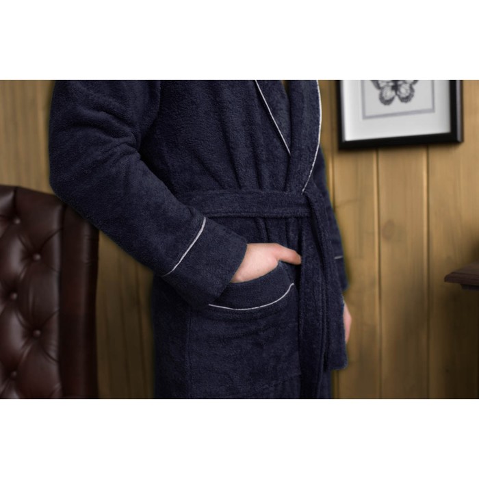 Халат мужской, шалька/кант, размер 52, тёмно-синий, махра