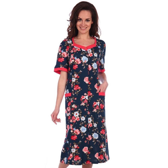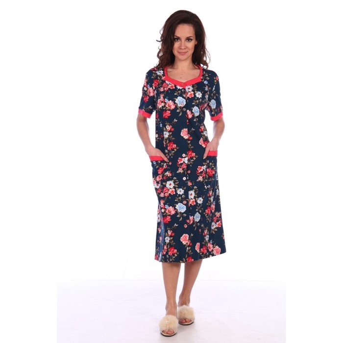 Халат на пуговицах женский 754 цвет синий, р-р 56