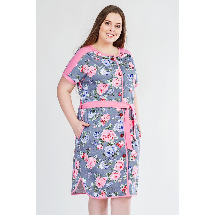 Халат женский на пуговицах 8738 цвет серый, р-р 54