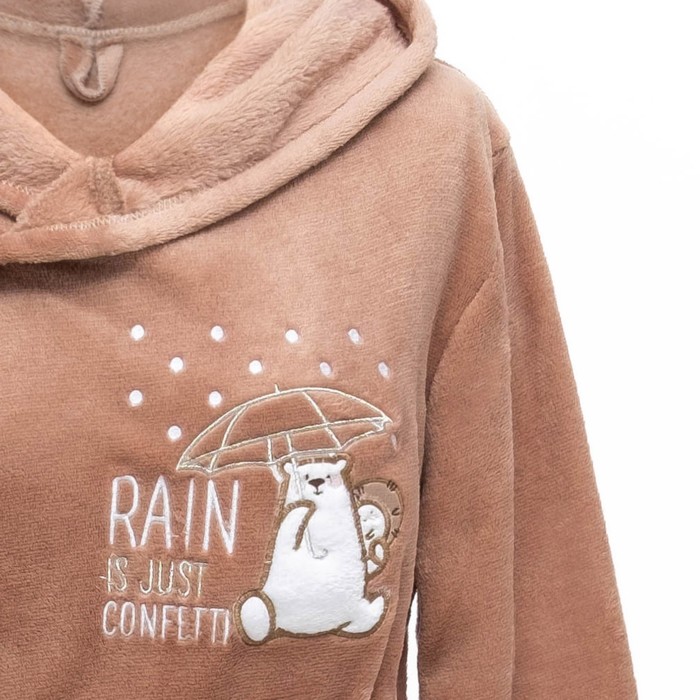 Халат женский с капюшоном KAFTAN "Happy family" кофе, р-р 46-48, 100% п/э, велсофт