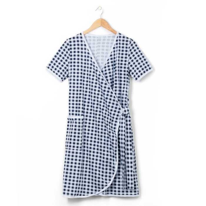 Халат женский запашной133 цвет синий клетка, р-р 46