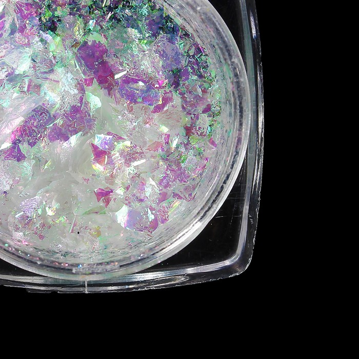Хлопья Юки для декора ногтей, 1гр, с аппликатором, цвет зелёный/фиолетовый