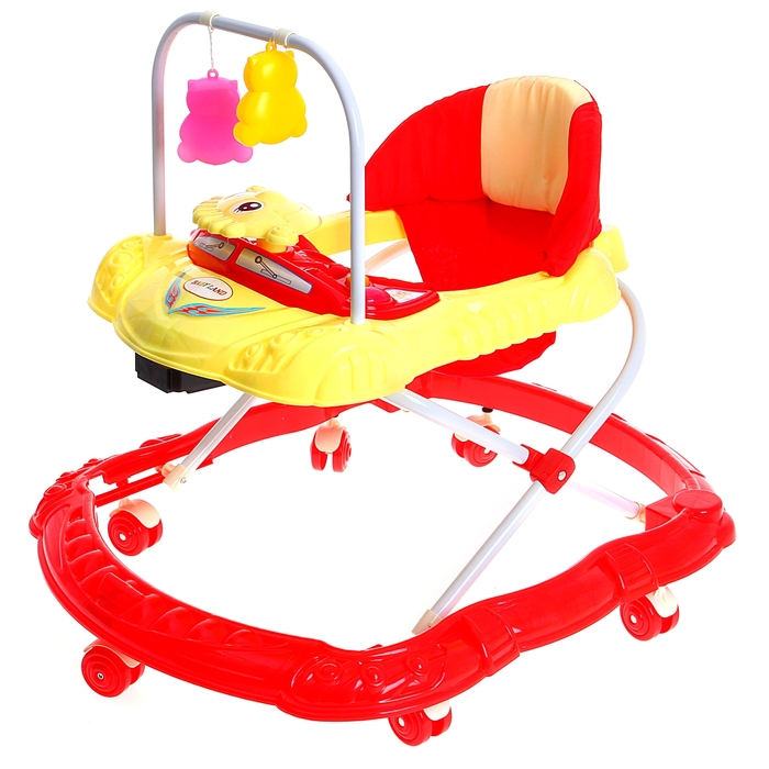 Ваш малыш делает первые шаги? Данный предмет поможет держать равновесие. Специальное приспособление развивает координацию движений, а его жёсткая спинка формирует правильную осанку. Учиться ходить совсем не скучно! Внимание крохи привлечёт игровой столик, напоминающий автомобильную панель с рулём, музыкальными эффектами, мигающими лампочками и подвесными игрушками.
