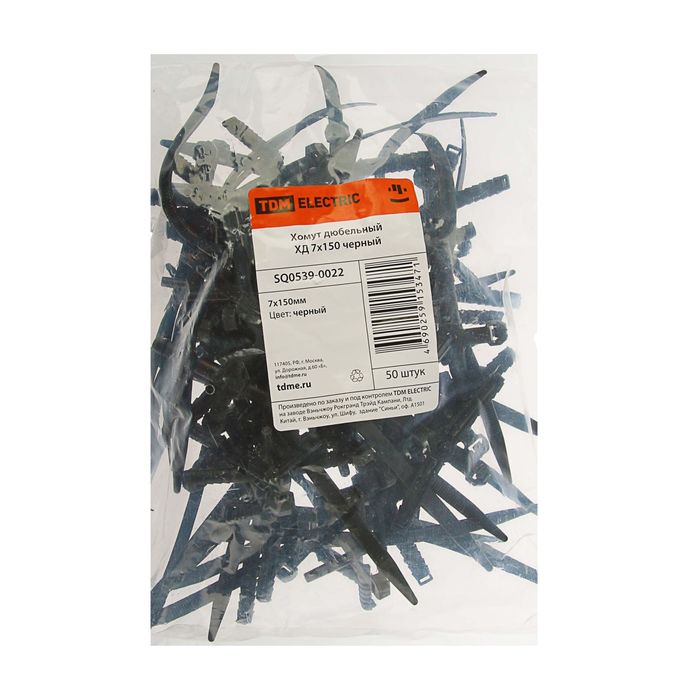Хомут дюбельный TDM, 7 х 150 мм, черный, набор 50 шт, SQ0539-0022