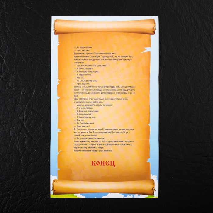 Эх, застолье русское, пьяное да вкусное! Наливайте, запевайте, закусить не забывайте! Ну, а чтобы праздник удался на славу, предлагаем вам внести в него немного сказочной атмосферы. Открывайте этот набор для проведения праздника, и веселье не заставит себя ждать! Перед вами сказка с алкогольным сюжетом, а вот с каким именно — узнаете сами.