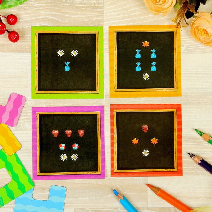В наборе вы найдёте задания разной сложности, а на обороте каждой карточки находится правильный ответ.