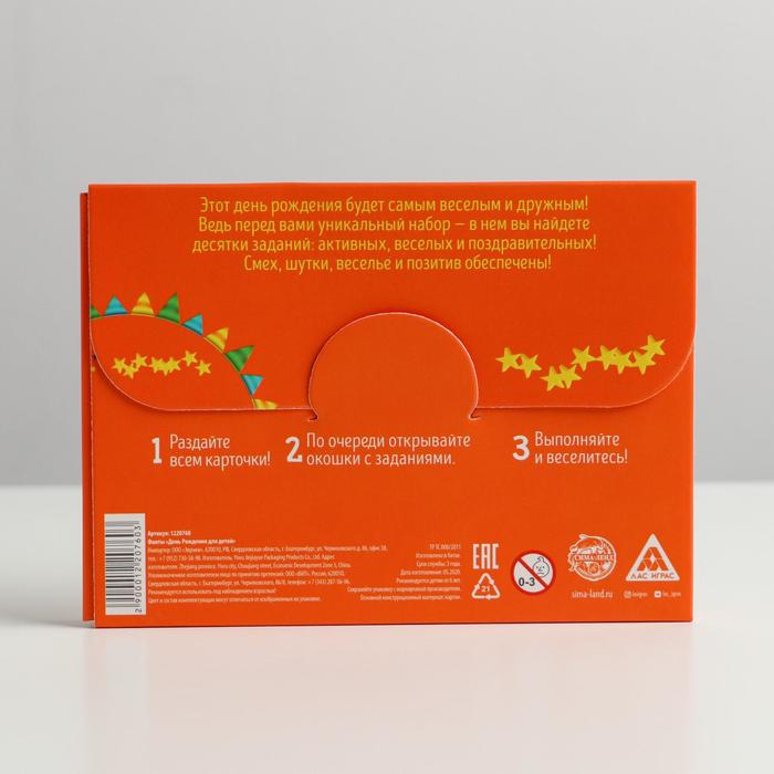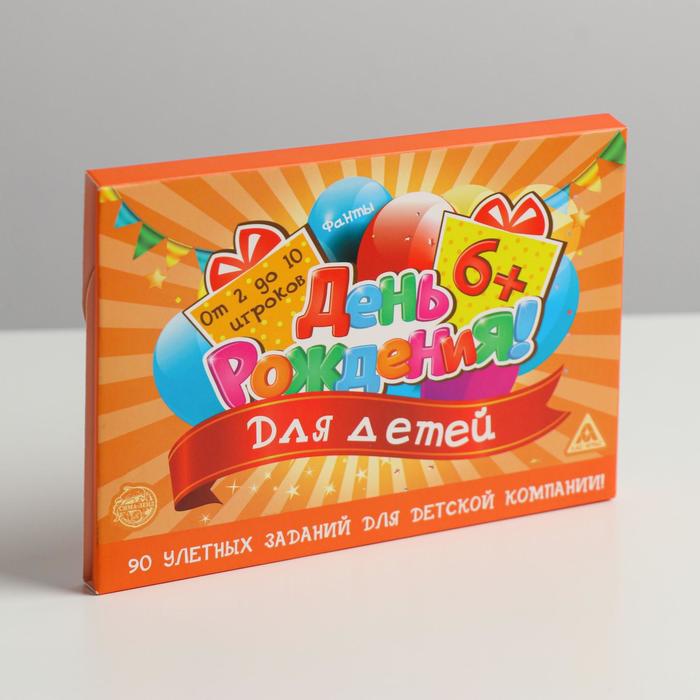 Скоро день рождения? С этим набором вы с лёгкостью развеселите большую детскую компанию! Внутри вы найдёте сразу 90 весёлых и смешных заданий для ребят. Дерзайте, праздник только начинается!