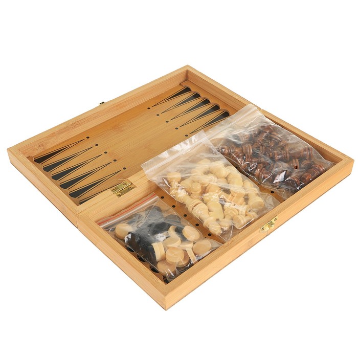 Игра настольная, набор 3в1 (нарды, шахматы, шашки), дерево, 29*29*3см