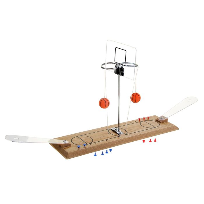 Поставьте приспособление на устойчивую поверхность и приступайте к соревнованию. Запускайте мячи нажатием на пусковую пластину. После точного попадания в сетку вставляйте цветные колышки в специальные отверстия в доске, чтобы считать набранные очки. Выигрывает тот, кто первым наберёт 6 очков. Устройте свой мини-чемпионат: засекайте время и считайте попадания каждого участника. Выиграть может каждый, ведь рост здесь не имеет никакого значения!