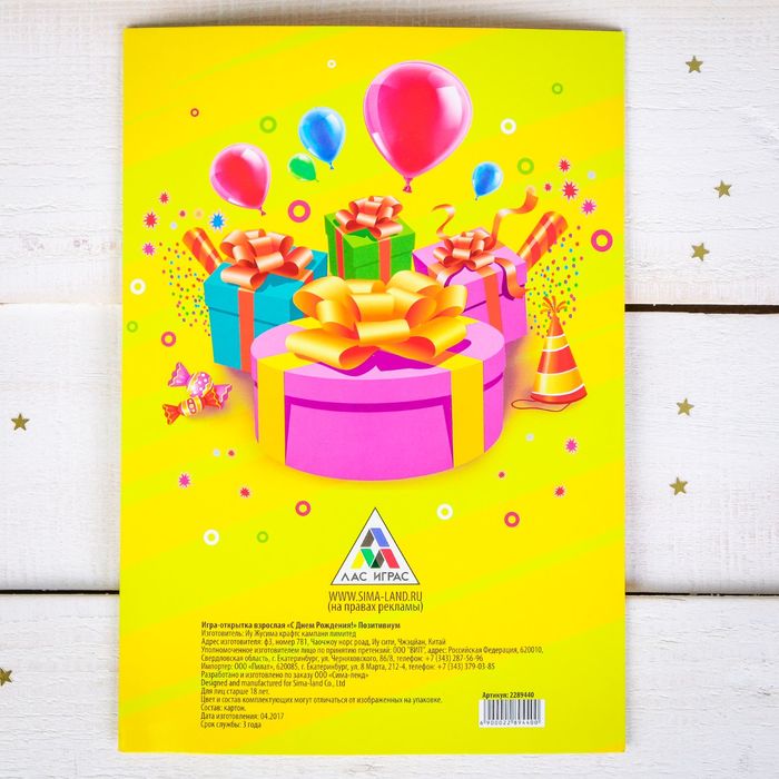 Игра-открытка взрослая"С Днем Рождения!".активити. 22х15см