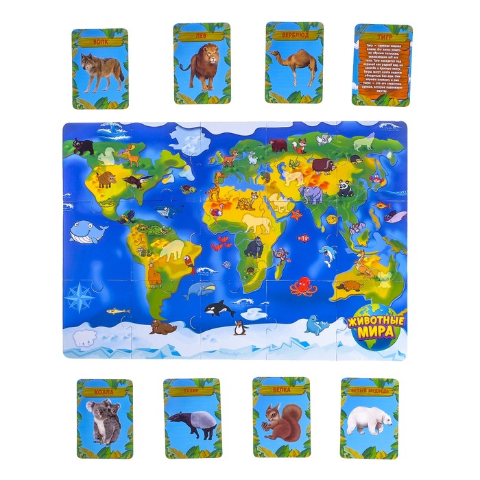 Игра-пазл "Дикие животные", с фигурками, 3 в 1