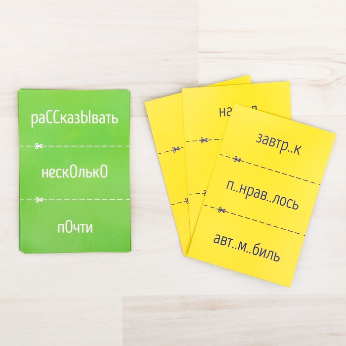 Для начала разрежьте карточки по пунктирным линиям. Затем игрокам нужно вооружиться ручками или карандашами, по очереди вытягивать карты и зачитывать слова с пропущенными буквами. Участник, который верно ответил, какую букву нужно вставить, получает победное очко. Пишите правильно и выигрывайте!