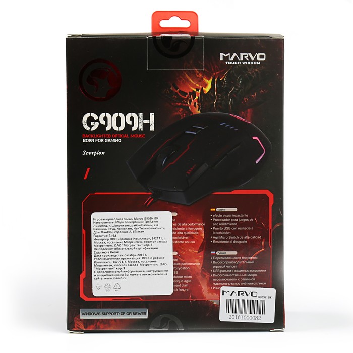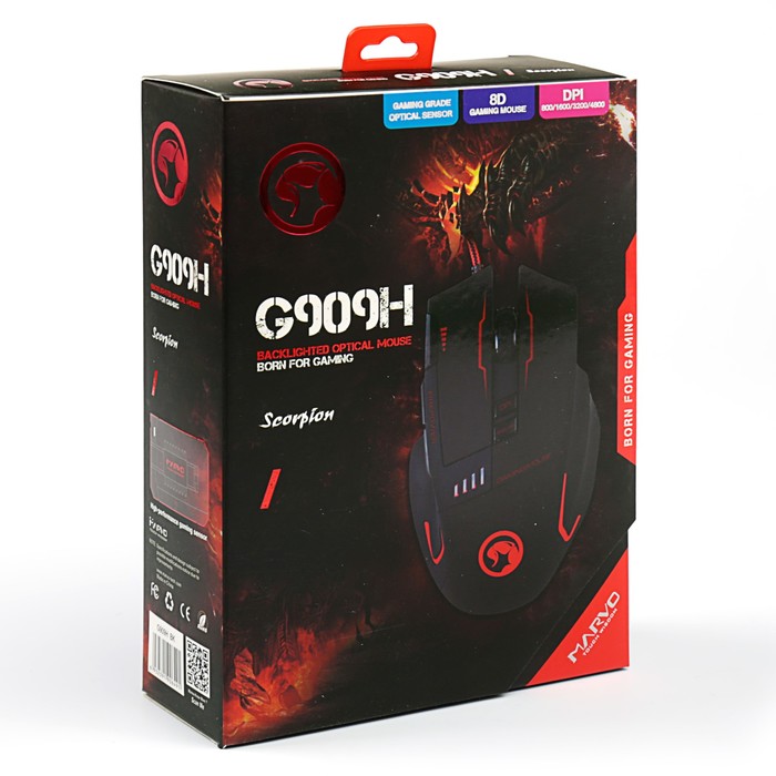 Игровая проводная мышь MARVO G909H BK подходит для выполнения разных задач, может использоваться в офисе или дома. Подключается к компьютеру или ноутбуку.