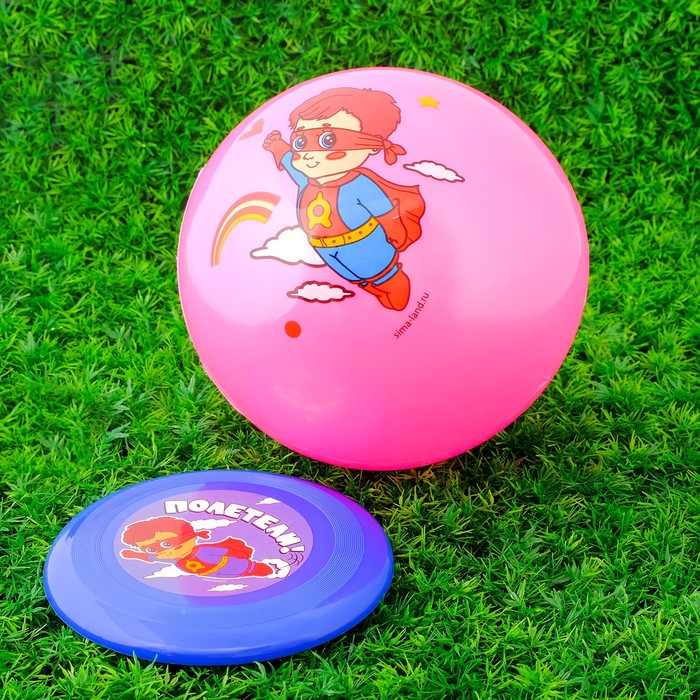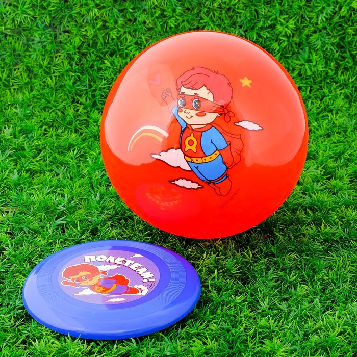 Игровой набор: фрисби, мяч детский "Супергерой", 22 см