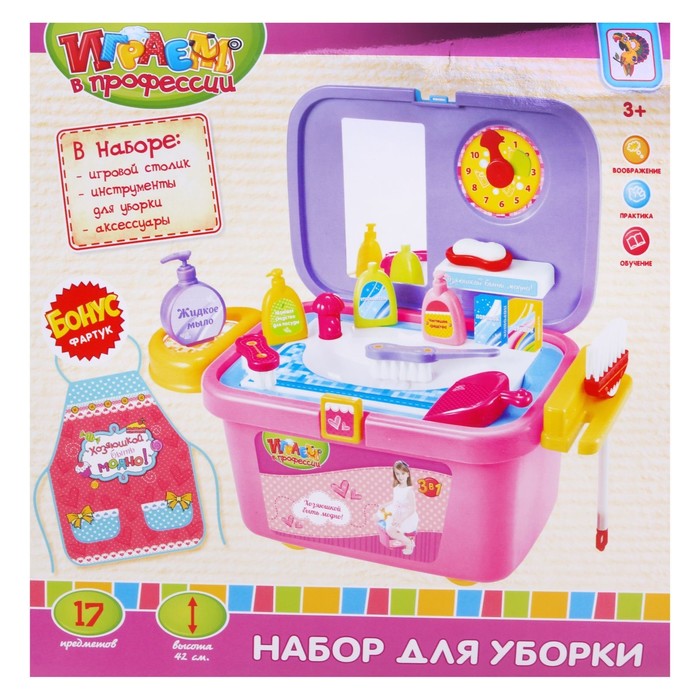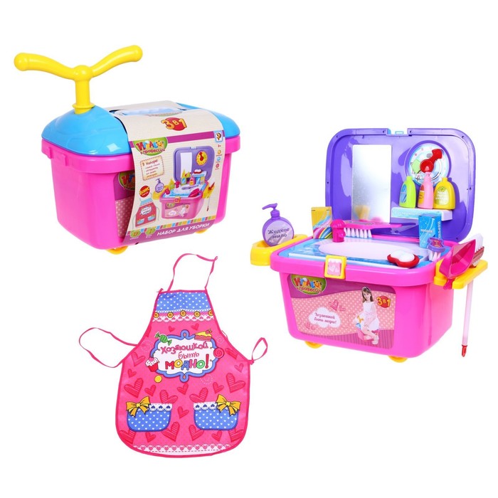 Игровой набор-каталка 3 в 1 "Для уборки", 17 предметов, высота 42 см, БОНУС - фартук