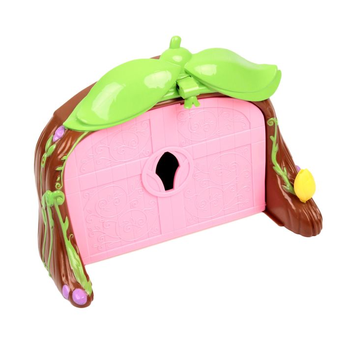 Домик феи выполнен в виде небольшого деревца, прикрытого листвой. У конструкции имеются функциональные элементы: малышка нажмёт на дверь, и она откроется.