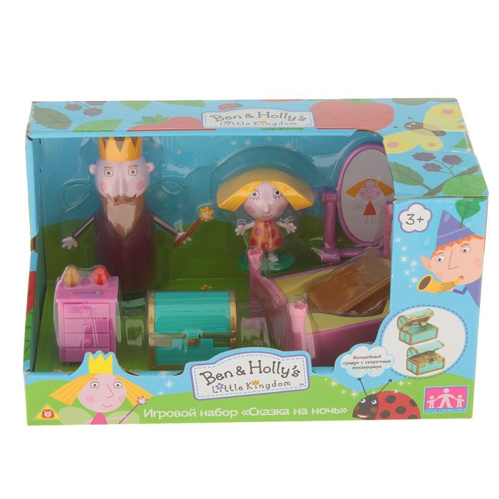 Набор «Сказка на ночь» позволит ребёнку погрузиться в чудесный мир волшебников и эльфов! Малыш разыграет множество сюжетов в наполненной сюрпризами комнате Холли. Деревянный сундук с двойным дном может быть полным золота, а может — совсем пустым. Зеркало вращается.