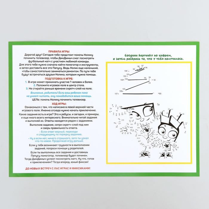 Со множеством современных гаджетов живое общение с родственниками и друзьями всё больше отходит на задний план. Но как же здорово увлечённо поиграть или вспомнить детство в весёлой и шумной компании! Игровой плакат со скретч-слоем ФИКСИКИ "Ремонтируем вместе с Фиксиками" поможет собрать вместе родственников и друзей, отложить в сторону все устройства и прекрасно провести досуг. У нас вы найдёте игры для людей разных возрастов и с разными предпочтениями.